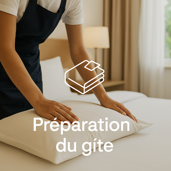 Mise en place du linge propre, vérification des équipements, petites attentions pour les hôtes (welcome pack, odeurs d’ambiance, etc.).