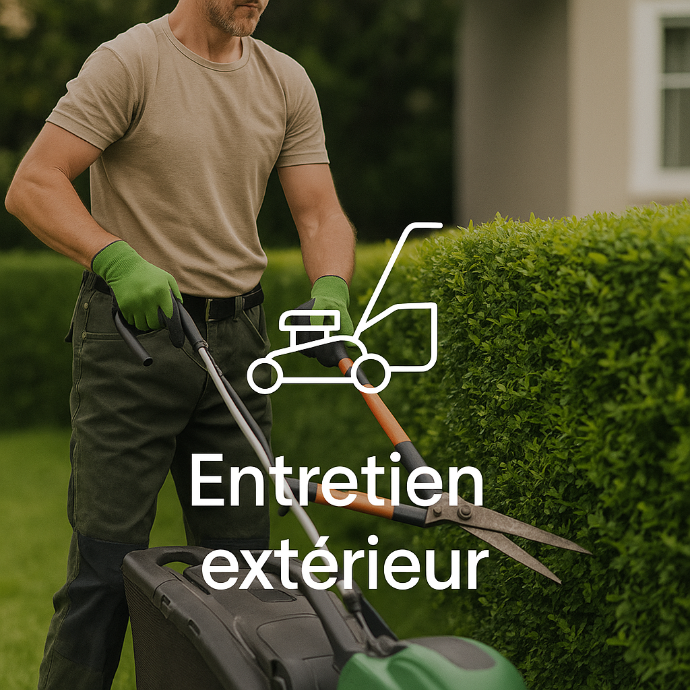 Tonte de pelouse, taille des haies, entretien des allées et des zones extérieures pour un extérieur toujours soigné.